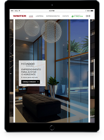 Ao navegar pelo site é possível conhecer a Winter, bem como se sentir dentro dos empreendimento, por meio da apresentação visual e tour interativo. Além de layout clean e dinâmico, todo o site foi pensado para uma melhor experiência do usuário.
